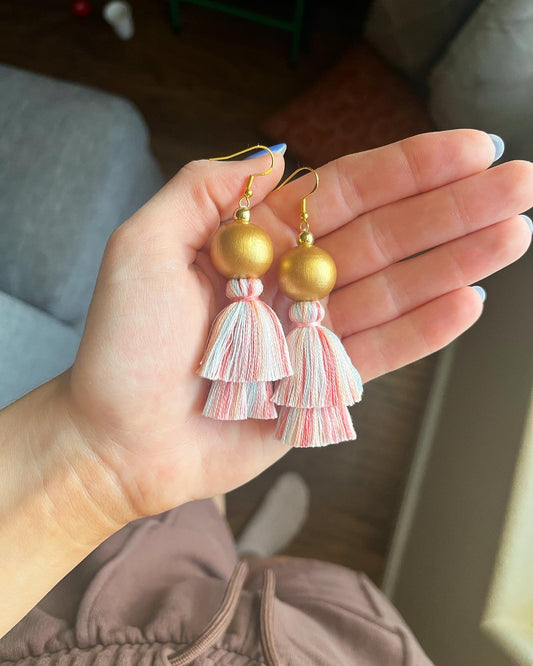 Cheese Painted Bead Tassel Earrings